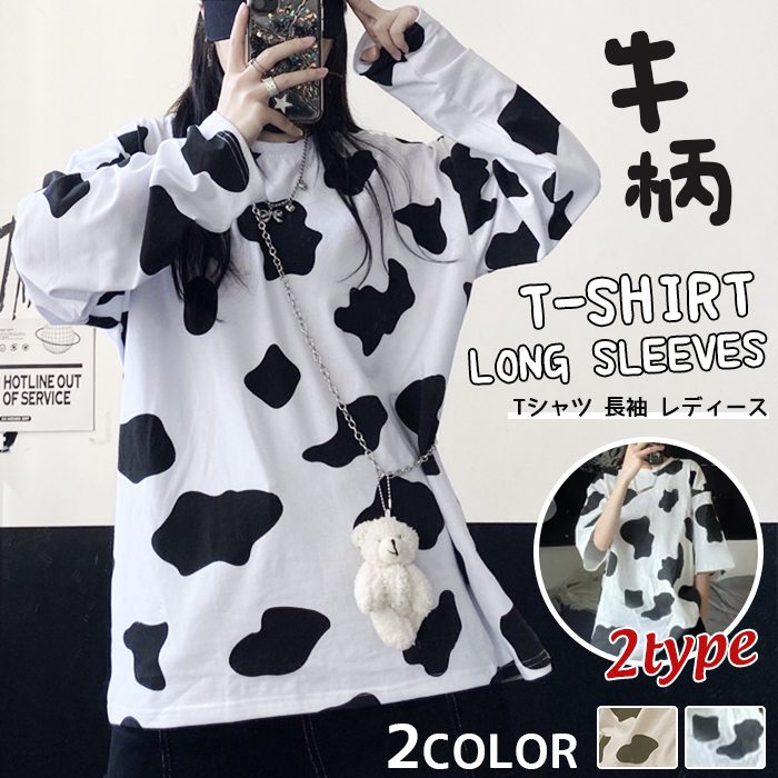 Tシャツ 半袖 レディース カットソー トップス 牛柄 ゆったり 体型カバー カジュアル ホワイト 可愛い ダルメシアン 干支柄 男女兼用 長袖タイプ追加 春夏