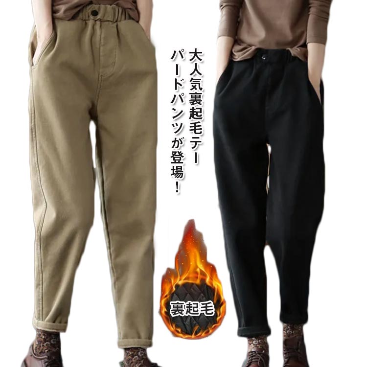 無地 長ズボン カジュアル おしゃれ 綿 あったか 美脚 ボトムス 秋冬 レディース 裏起毛 ロングパンツ ウエストゴム 防寒 裏フリース イージーパンツ 起毛 暖パンツ 暖かい サルエルパンツ