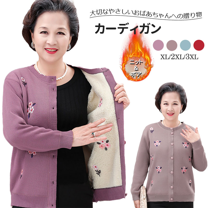 ニットカーディガン 裏起毛 レディース セーター 婦人服 裏ボア 50代 60代 70代 80代 90代 -5 全2色