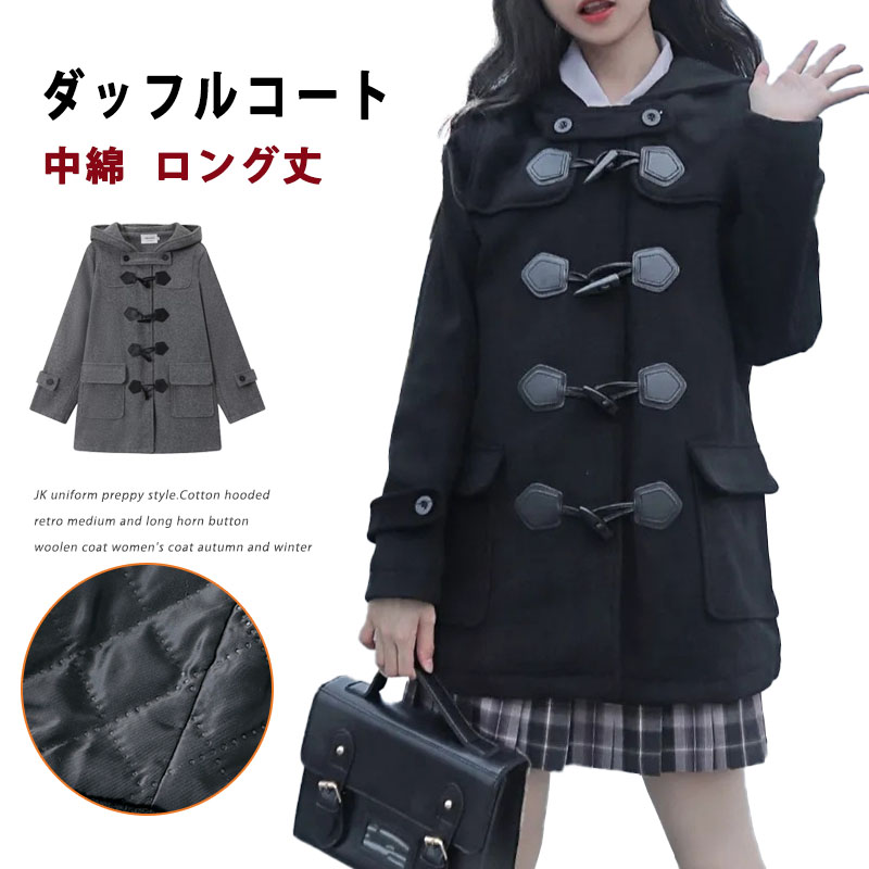 ダッフルコート 学生 スクールコート 女子 ダッフル 中綿 制服 女子用 レディース コート アウターコート フード付き ブレゾーコーデ 暖かい 裏地綿 アウター 秋冬 中高 ロングコート