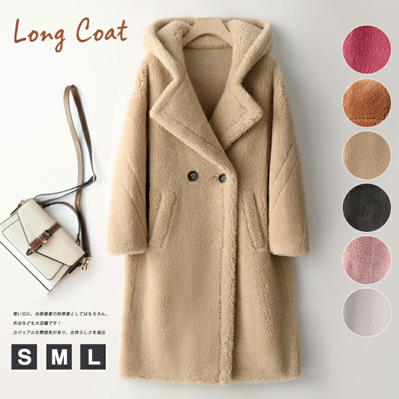 ボアコート ロングコート テディベアコート レディース フード付き ウール混 ミドル丈 襟付き 長袖 厚手 羽織り 暖かい 防寒 もこもこ アウター ダブルコート 秋冬 きれいめ 高級 上品 おしゃれ