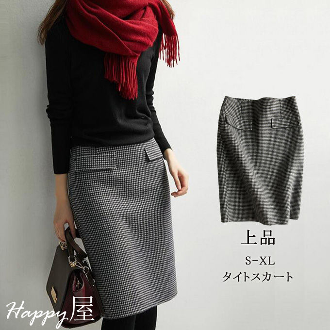 タイトスカート レディース スカート ペンシルスカート ひざ丈スカート メルトン 起毛素材 ツイード 美シルエット 千鳥柄 ボトムス スリット オフィス フォーマル 入学式 卒園式 卒業式 大 お受験