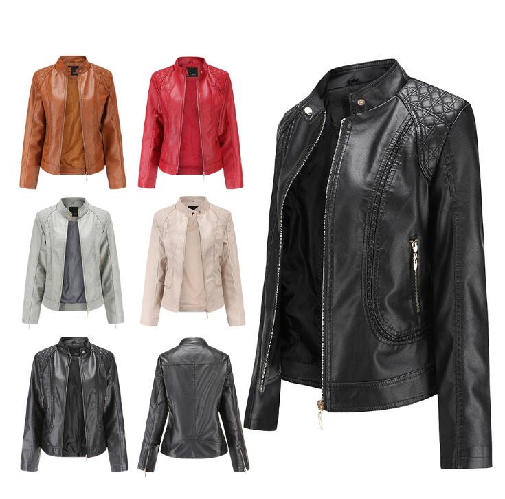 ライダースジャケット レディースレザージャケット コート フェイクレザー ロック風 コート レザーコート バイカーブルゾン 大きいサイズ 革ジャン 5色 -4