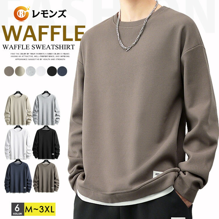 ワッフル ロン メンズ プルオーバー 長袖シャツ トレーナー クルーネック ルームウェア カジュアル