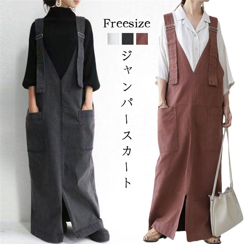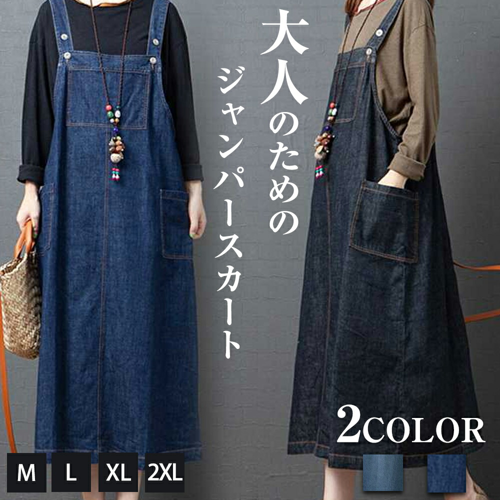 ジャンパースカート レディース デニム ワンピース サロペットスカート キャミワンピース 重ね着 ゆったり ワンピ ロングワンピース オールインワン ジャンパー スカート マキシ丈 オーバ サロペット