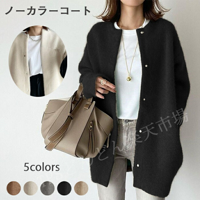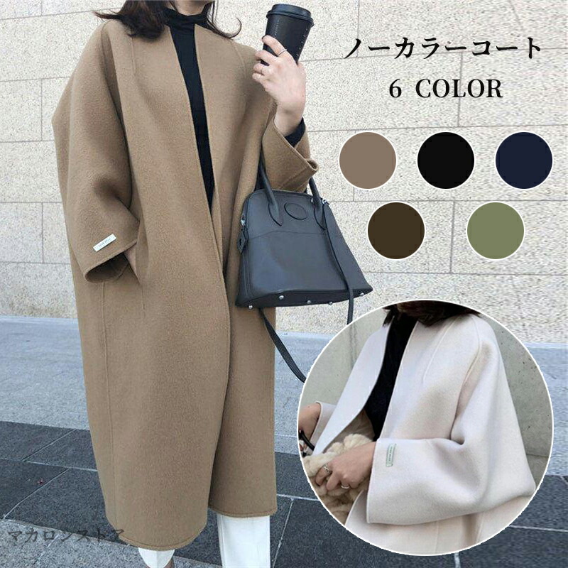 ノーカラーコート レディース 秋冬コート 50代 チェスターコート トレンチコート ロング丈 コート アウター ロングコート オフィス 長袖 ウィンドブレーカー 羽織り ゆったり 着痩せ