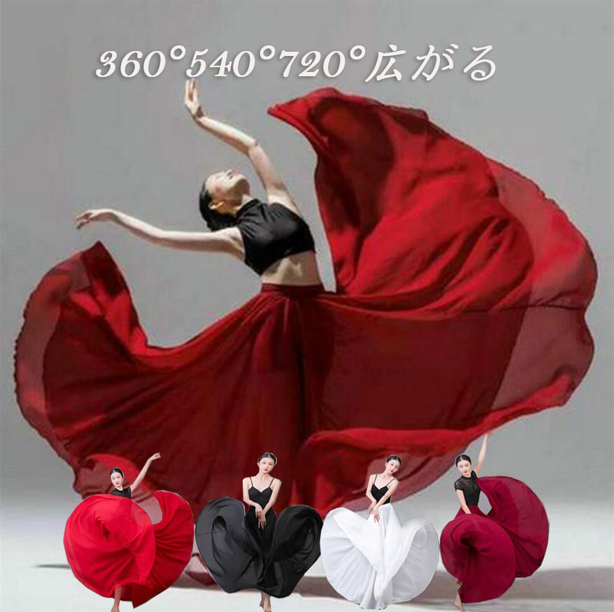 レディース ダンス スカート ロング丈80cm 85cm 90cm 95cm有 ボリューム 大きい裾 広がる360° 540° 720° シフォン フレア 飄逸 バレエ ワルツ フラメンコ 古典ダンス