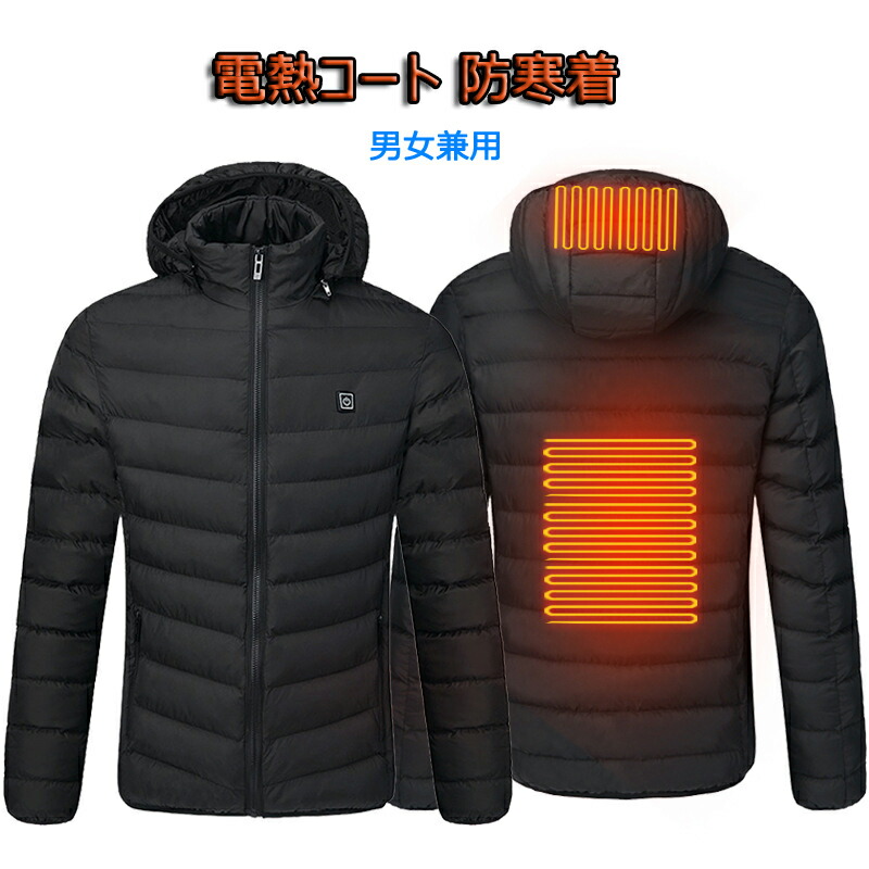 電熱コート USB ヒーター ヒートベスト メンズ レディース 秋 冬 フード付き 屋外 現場作業 アウトドア 夜釣り バイクツーリング 防寒着 完全水洗可能 3段温度調整 通勤 冷え性に対 男女兼用