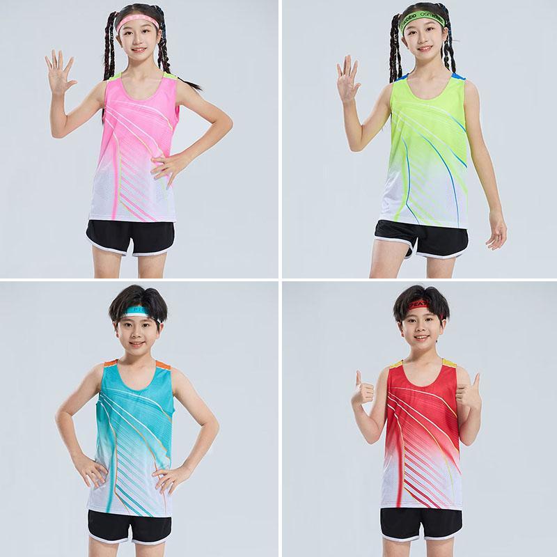 陸上 ユニフォーム 男子 女子 キッズ 柔らかい セットアップ パンツ ノースリーブ ランニング スポーツ ウェア 速乾 競技 大きいサイズ ピンク 赤 青 ラウンドネック