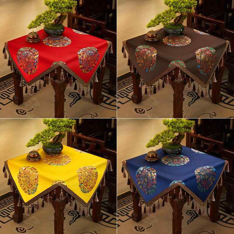 テーブルクロス おしゃれ 中国風 布 正方形 タッセル リビング 寝室 ダイニング 机 キャビネット カバー 小さめ 装飾 インテリア 小物 赤 黄 青 エレガント