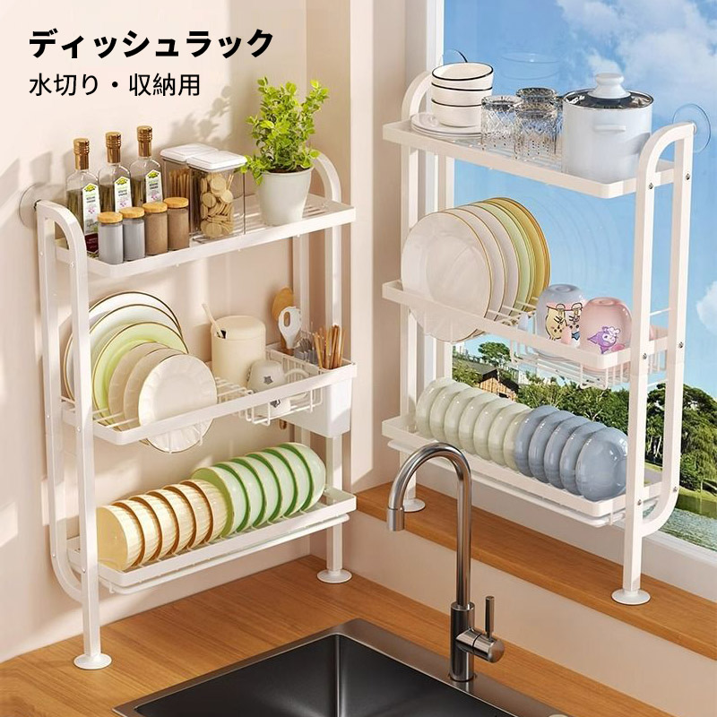 3段式 2段式 水切りラック 水切りかご 水切りカゴ 水切りバスケット ディッシュラック 皿洗い 水切り籠 水切りセット 吸盤付き 省スペース シンクサイド