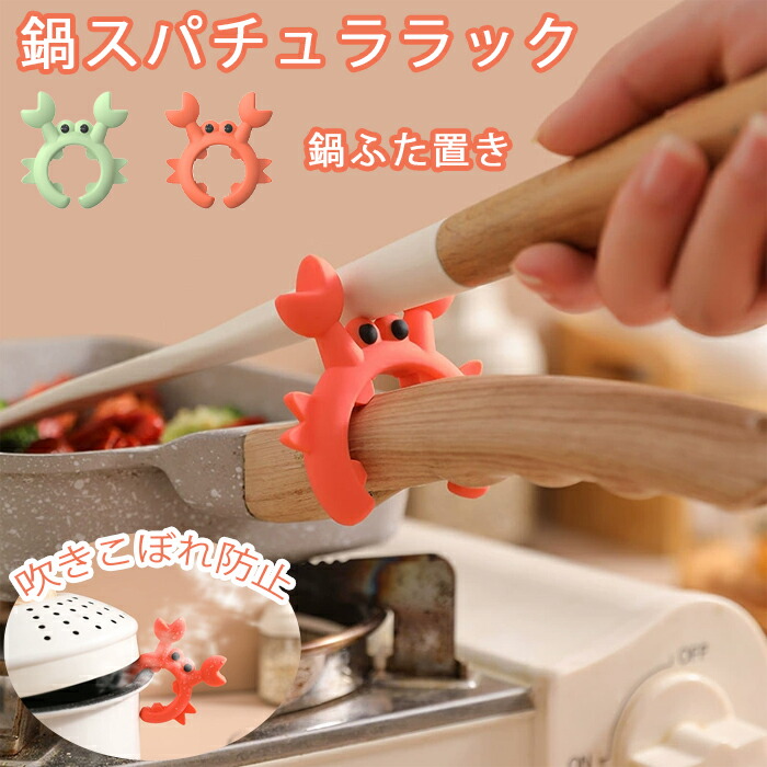 お玉置き キッチン 収納 小物 2個セット カニ おしゃれ スパチュラホルダー スパチュララック キッチンツール置き 持ち運び 鍋やフライパンに使える 吹きこぼれ防止 洗える 清 便利グッズ