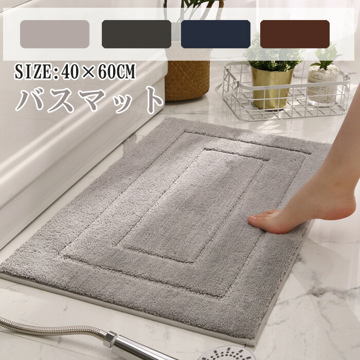 速乾バスマット 無地 風呂マット ラグマット 洗面台 台所マット 40×60cm 吸水マット 室内 丸洗い バスマット 衛生 防臭抗菌 シンプル 厚手 足拭きマット 滑り止め 玄関マット