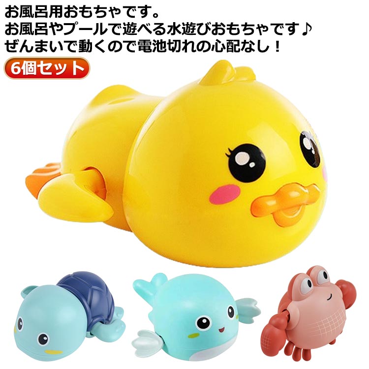 亀 お風呂 6個セット 男の子 おもちゃ カニ イルカ 子供 水遊び キッズ 赤ちゃん 水遊びおもちゃ ベビー 電池不要 女の子 鴨 ぜんまい 動く 泳ぐ 知育玩具 水に浮く 動物型 お風呂遊び