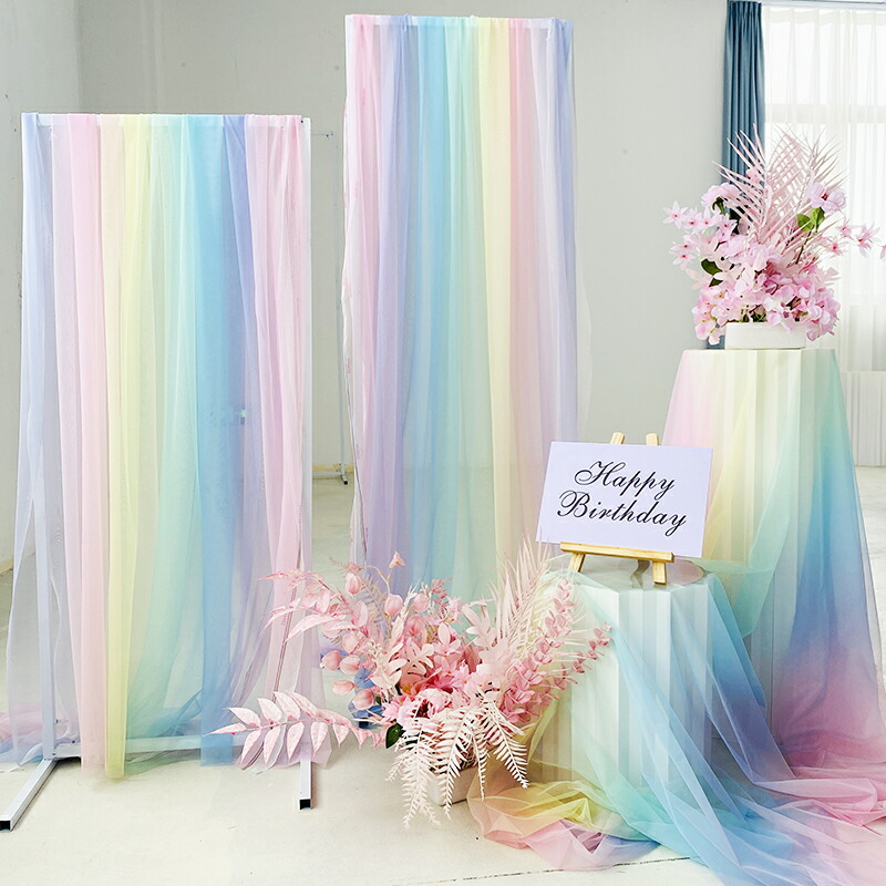 虹色 生地 1.5Mx1M ウェディング カーテン チュール ベール メッシュ生地 グラデーション タイダイ色 背景シート ウェディングの手作り背景 ウエディングランド プロポーズシーン 撮影用背景布