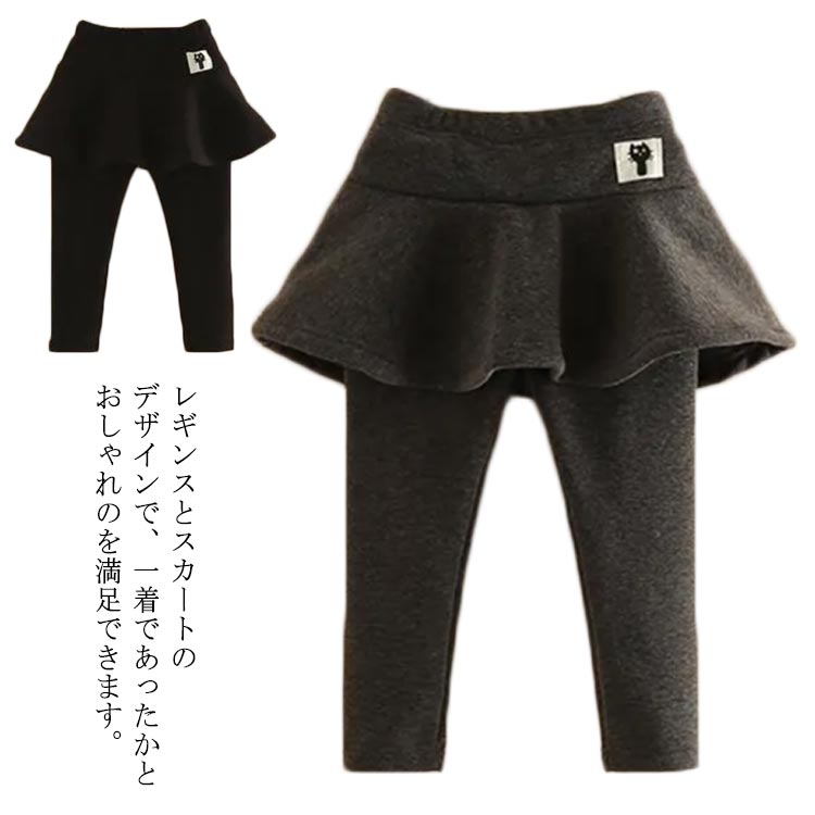キッズ 女の子 スカッツ 裏起毛 あったか レギンス付 スカート 秋冬 10分丈 子供服 スパッツ ガールズ 保温 暖かい ズボン 伸縮性 防寒 パンツ 可愛い おしゃれ グレー 80 90 10 黒