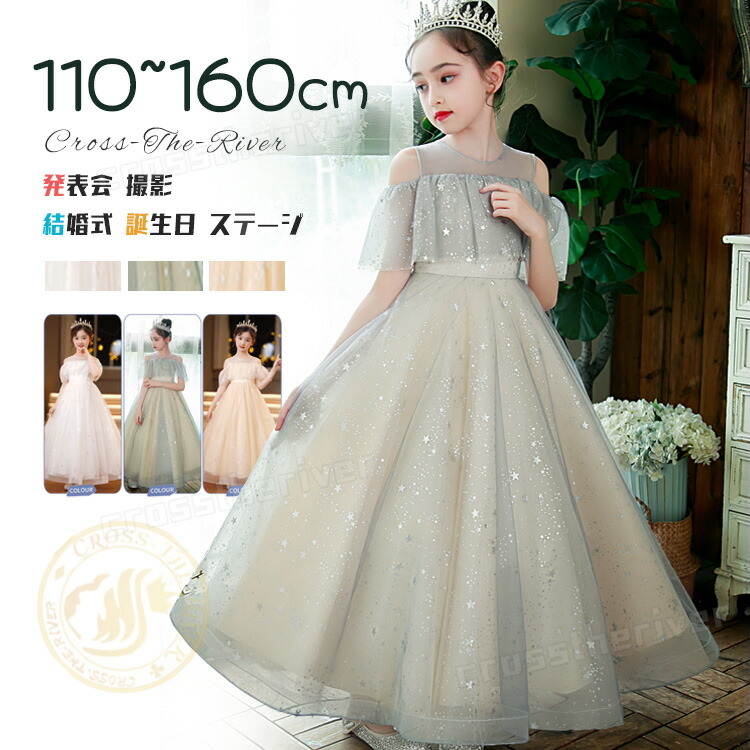 3色展開 子供 ドレス ピアノ発表会 中学生 結婚式 演奏会用ドレス 発表会 ロングドレス 130 140 150 灰青色 シャンパン色 白 コンサート 女の子 リングガール