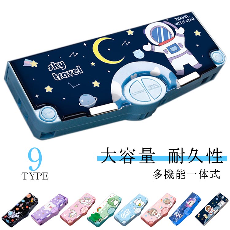 ペンケース 筆箱 ふでばこ ぼたん筆箱 鉛筆削り付き 両面開き ハサミ 消しゴム 物差し テープ収納リング 筆入れ 時間割表 小物入れ 大容量 多機能 軽量 耐久性 コンパクト 男の子 女 マグネット