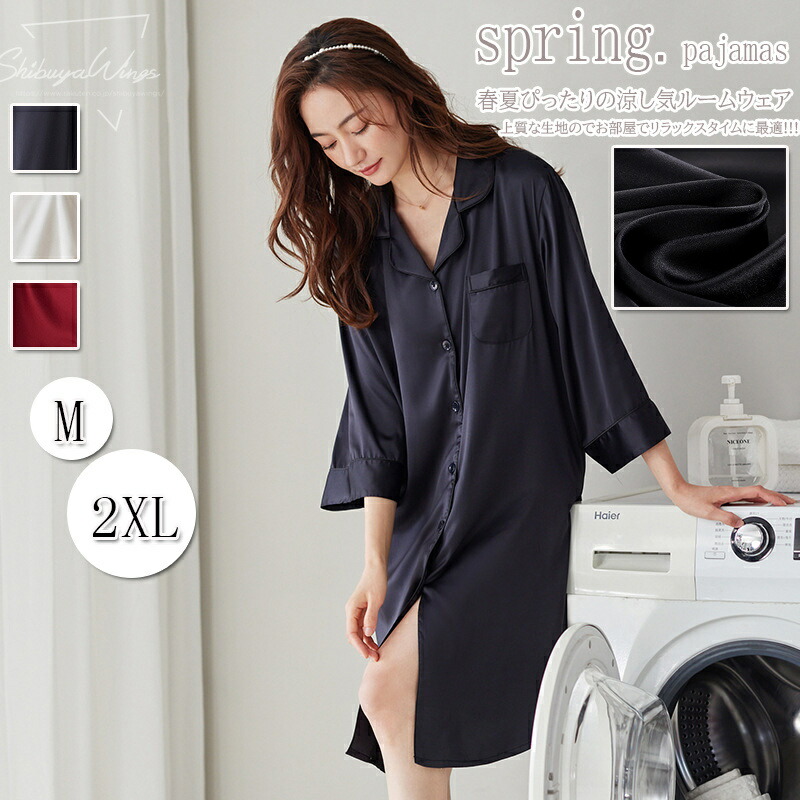 パジャマ レディース サテン調 シャツ レディース ナイトウェア ルームウェア パジャマ 大人気! ブラック ベージュ レッド M(お勧め体重45-55kg) L(お勧め体重55-60kg) XL(お勧め体重60-70kg) 2XL(お勧め体重70-80kg)