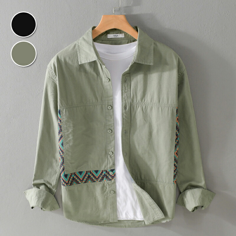 グリーン ブラック シャツ メンズ 長 メンズファッション 新作 グリーン ブラック M L XL XXL XXXL