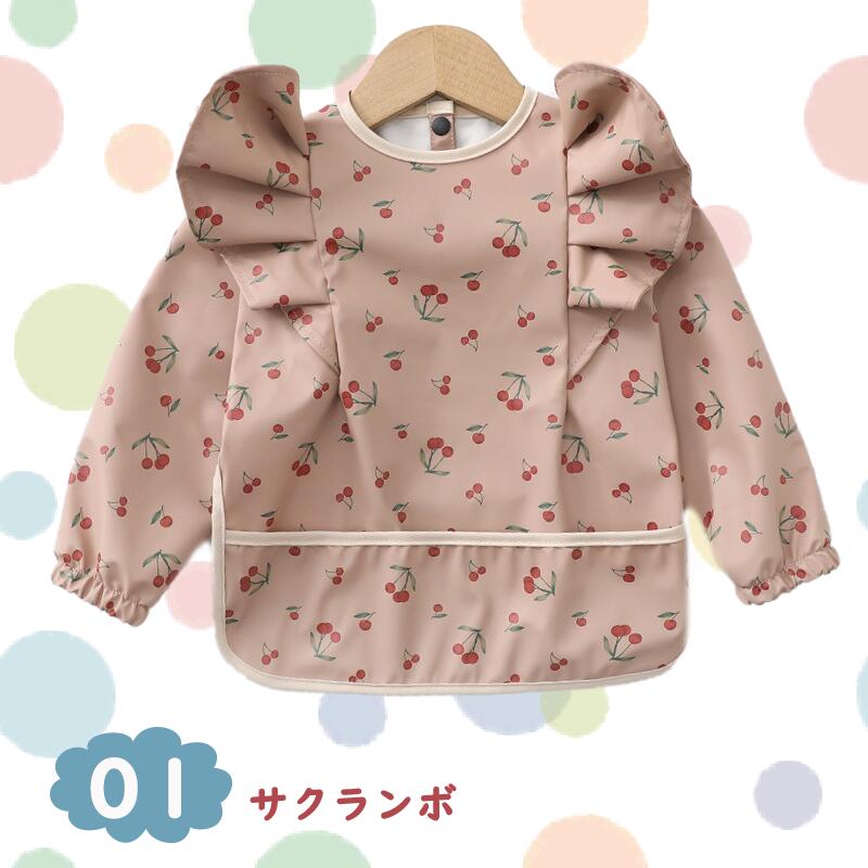 お食事エプロン 長袖 ベビー 離乳食 S(6-12ヶ月) M(12-24ヶ月) 01 02 03 04 05 06 07 08 09 10