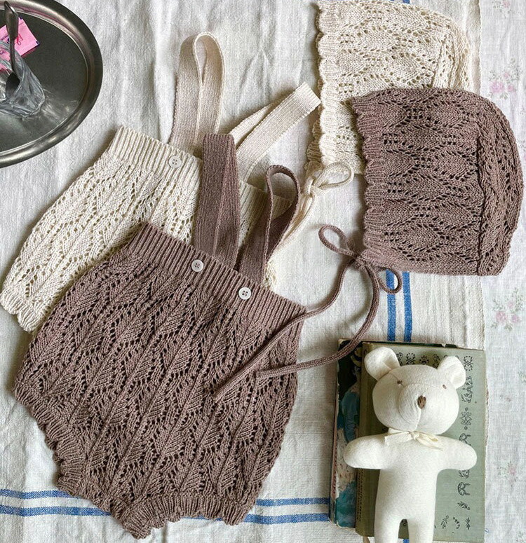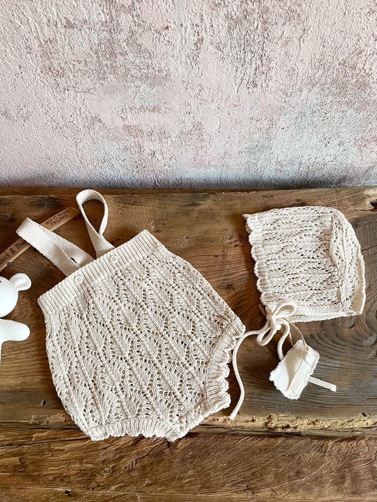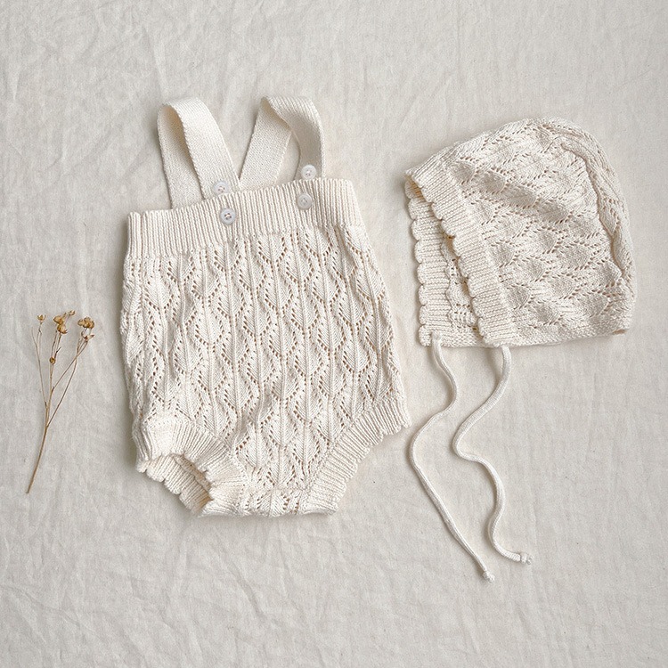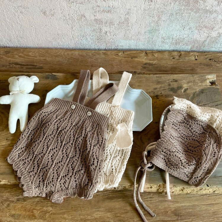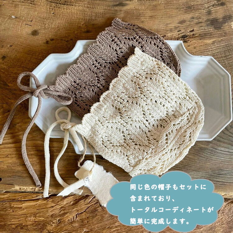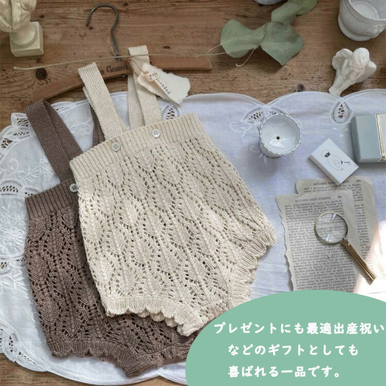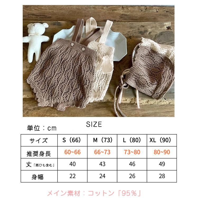 帽子付き サスペンダーニットロンパース キッズ ベビー マタニティ 特集 オフホワイト カーキ色 66cm 73cm 80cm 90cm