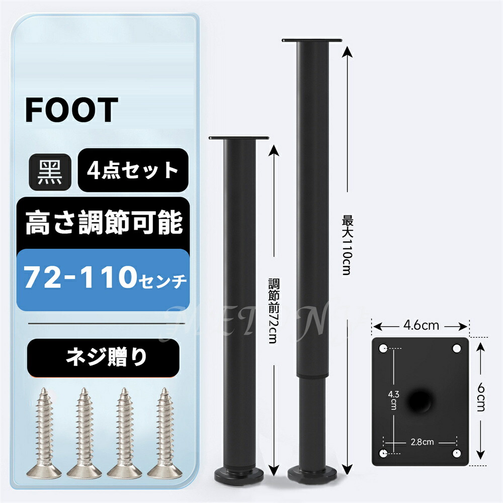 テーブル 脚 足 取り替え 継足 パー ブラック ホワイト 8センチ【8-12cm】 12センチ【12-18cm】 18センチ【18-30cm】 25センチ【25-42cm】 42センチ【42-72cm】 72センチ【72-110cm】