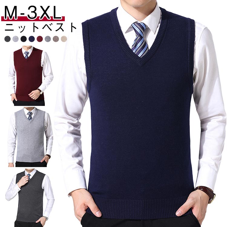 ベスト メンズ Vネック ニットベスト メンズファッション 豊富 ダークグレー ライトグレー ブラック ネイビー ワインレッド グレー コーヒー ベージュ M L XL 2XL 3XL
