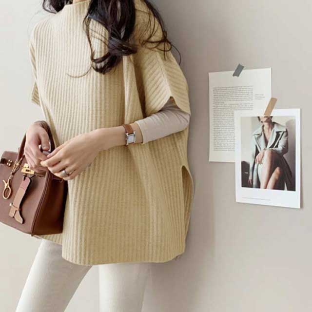 ベスト プルオーバー ポンチョ ニット レディースファッション 豊富な品揃え ベージュ ダークベージュ ブラック ホワイト