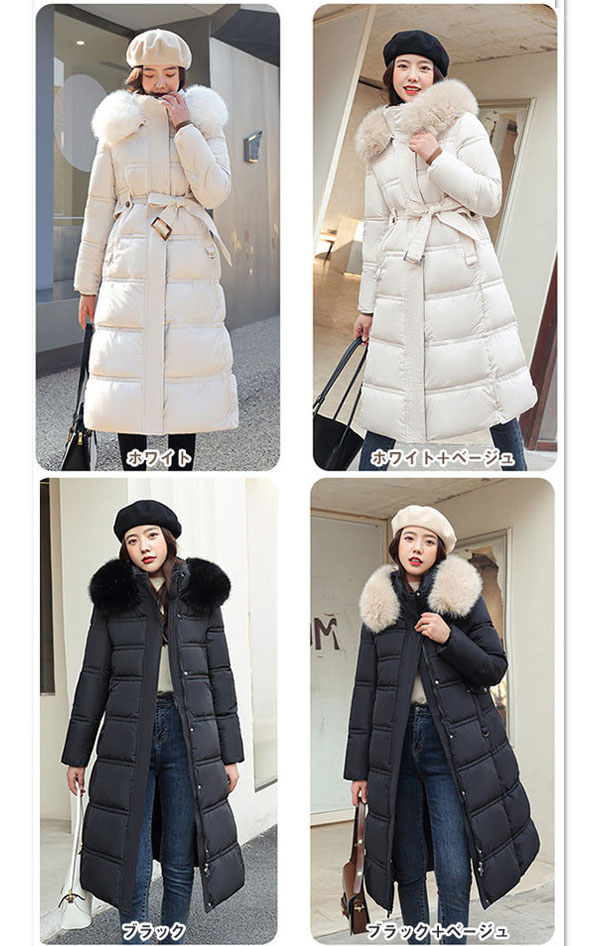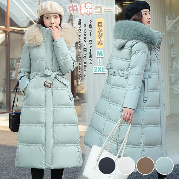 中綿コート レディース ロング フード レディースファッション 早い者勝ち M L XL 2XL ブラック ホワイト コーヒー色 ブラック+ベージュ ホワイト+ベージュ コーヒー色+ベージュ