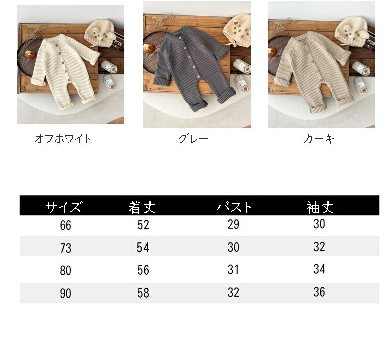 ロンパース ニット セーター春秋冬 ベ キッズ ベビー マタニティ 特集 カーキ グレー オフホワイト 66cm 73cm 80cm 90cm