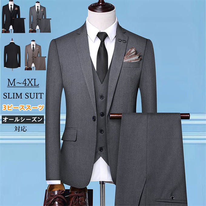メンズスーツ 3ピース スリーピースス メンズファッション 通販 ブラック グレー モカ 165/M 170/L 175/XL 180/2XL 185/3XL 190/4XL