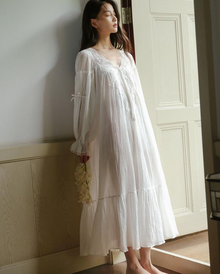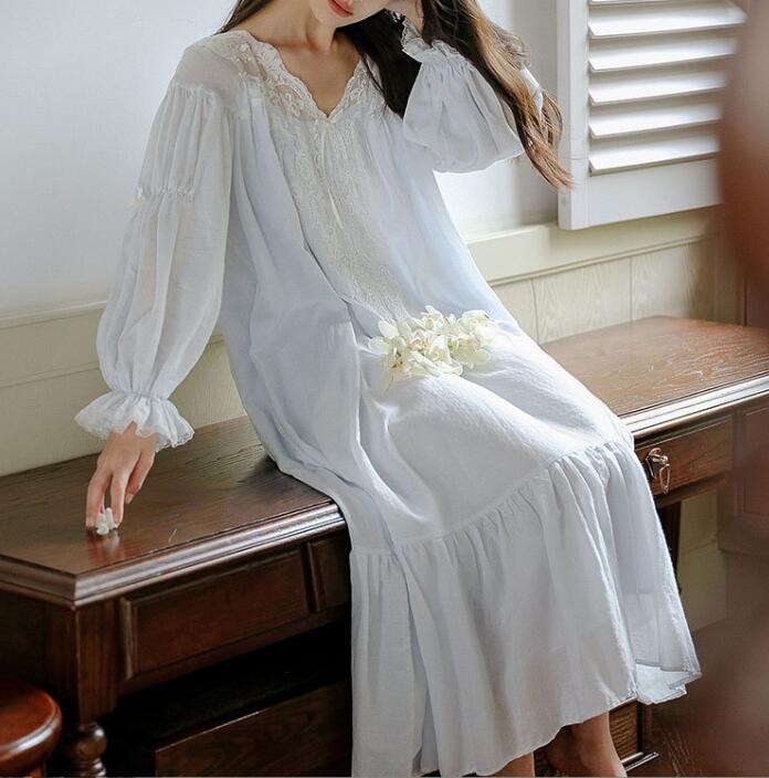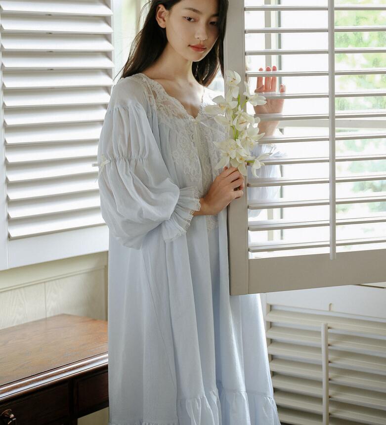 綿100%ネグリジェ レディースロング レディース ナイトウェア ルームウェア ネグリジェ 早い者勝ち S M L XL ホワイト ブルー