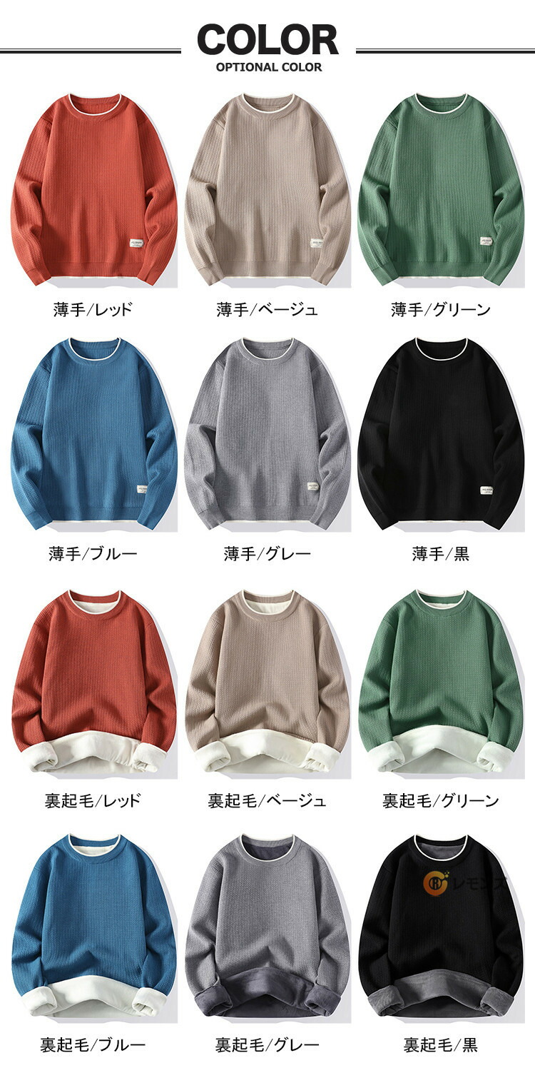 ニットセーター 裏起毛 ニット メンズ メンズファッション 早い者勝ち M L XL 2XL 3XL 4XL 薄手/レッド 薄手/ベージュ 薄手/グリーン 薄手/ブルー 薄手/グレー 薄手/黒 裏起毛/レッド 裏起毛/ベージュ 裏起毛/グリーン 裏起毛/ブルー 裏起毛/グレー 裏起毛/黒