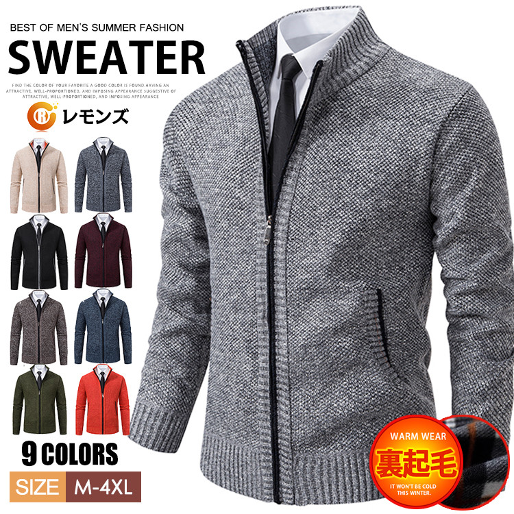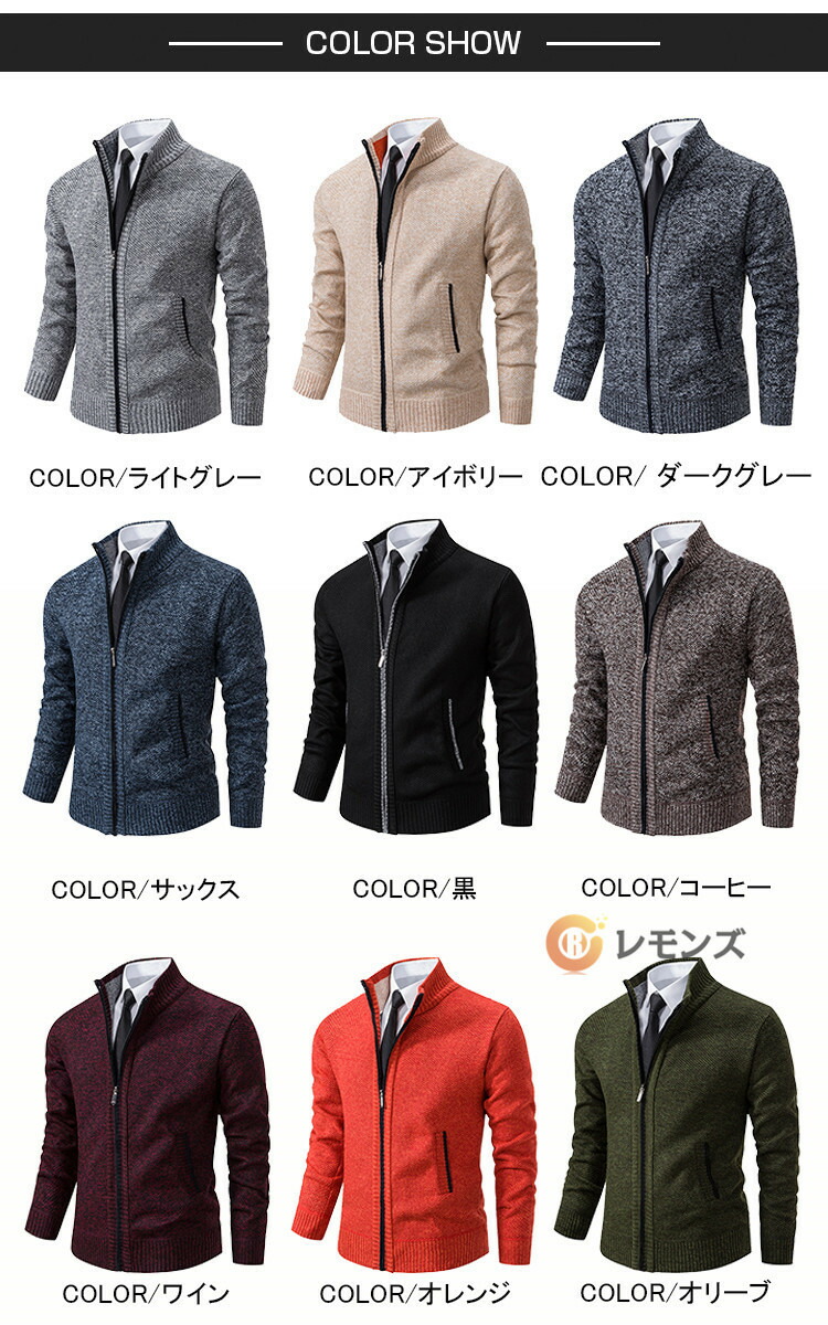 ニット カーディガン ジップアップ セ メンズファッション 早い者勝ち M L XL 2XL 3XL ライトグレー 黒 アイボリー ダークグレー オリーブ サックス オレンジ コーヒー ワイン