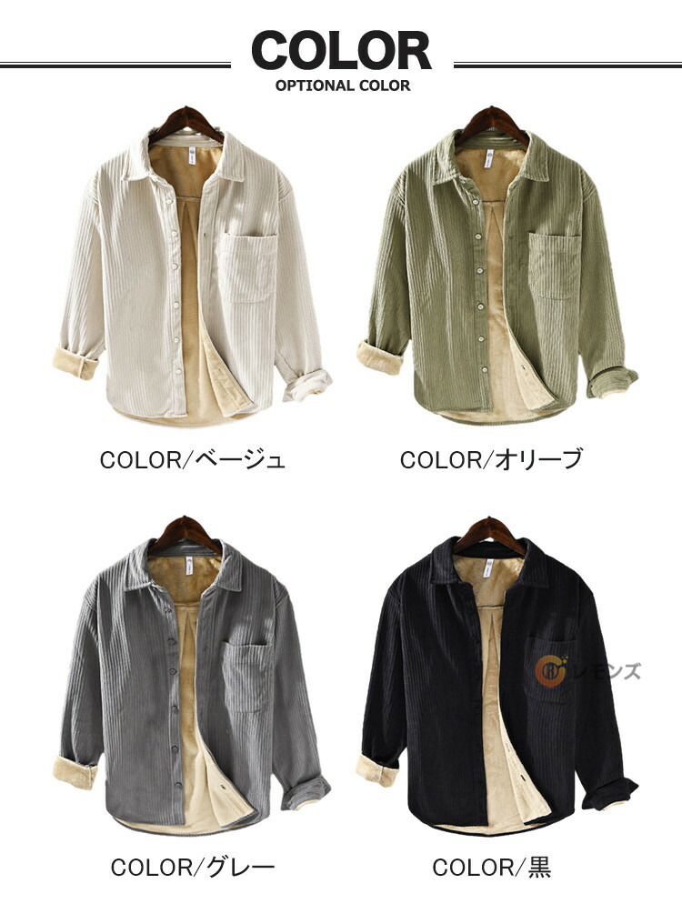 コーデュロイシャツ メンズ ボアシャツ メンズファッション 早い者勝ち M L XL 2XL 3XL ベージュ オリーブ グレー 黒