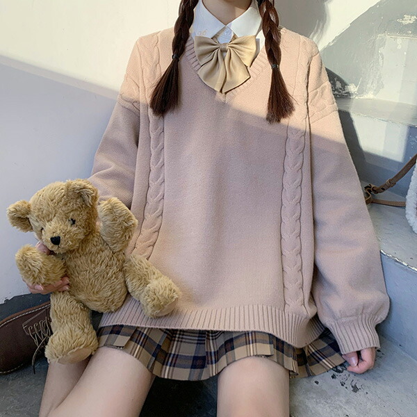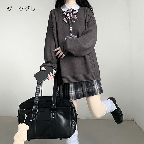 Vネックセーター レディース スクール レディースファッション 早い者勝ち ダークグレー ホワイト ネイビー ブルー カラー1
