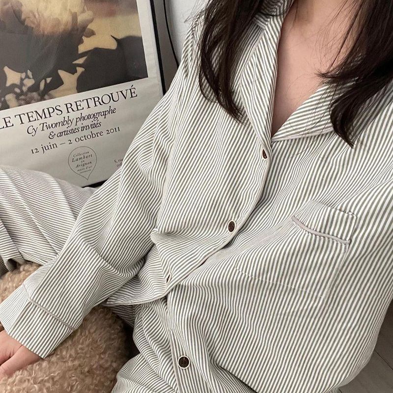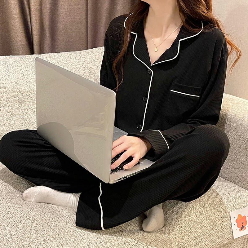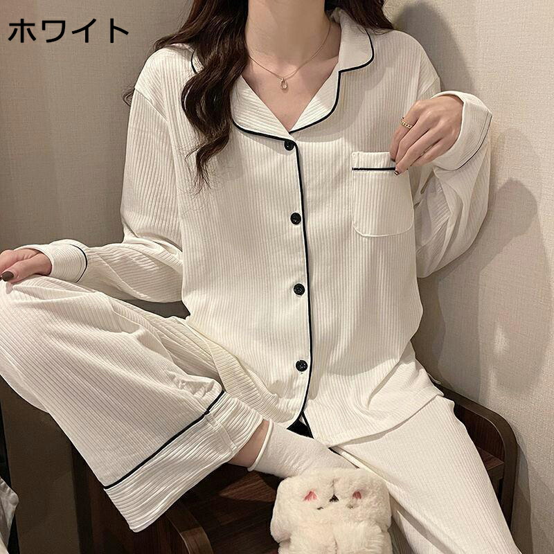 パジャマ 前開き レディース セットア レディース ナイトウェア ルームウェア パジャマ 続々登場 ホワイト ブラック ストライプ M L XL 2XL
