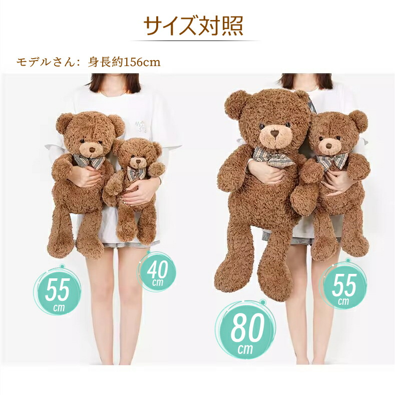55cm ぬいぐるみ くま テディベア クマ 大きいサイズ 小さいサイズ 50cm ヒグマ もこもこ ふわふわ リボン付き 蝶ネクタイ 寝具 添い寝 抱き枕 超可愛い 動物 プレゼント 誕生 おもちゃ