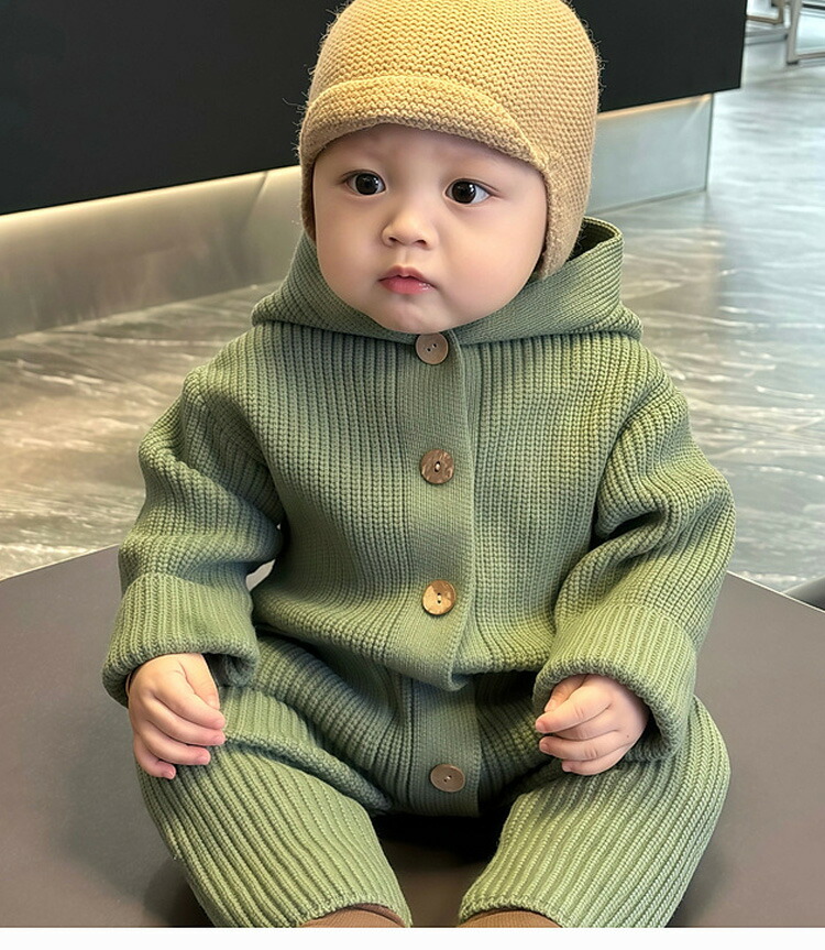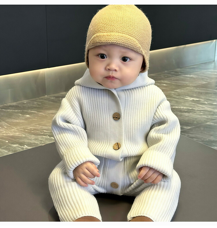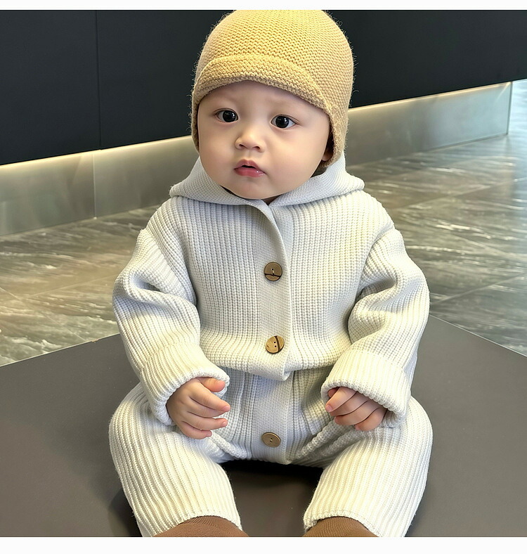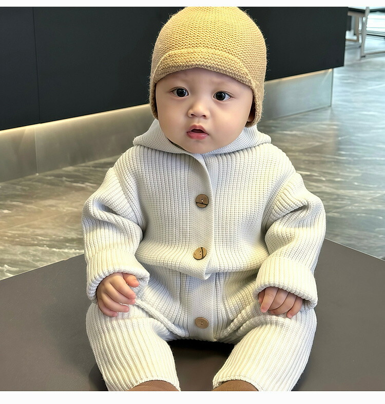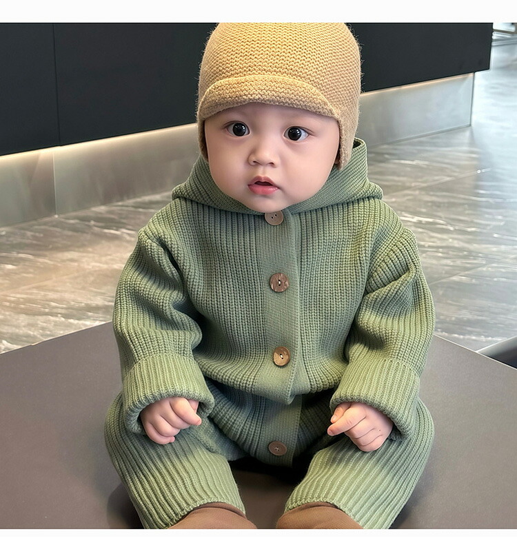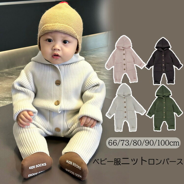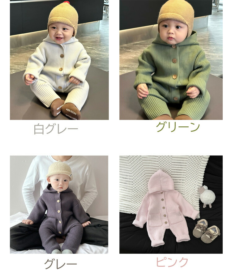 ベビー服 ニットロンパース 長袖 前開 ベビー ベビー服 ファッション カバーオール ロンパース 通販 グリーン 白グレー グレー ピンク 66cm 73cm 80cm 90cm 100cm