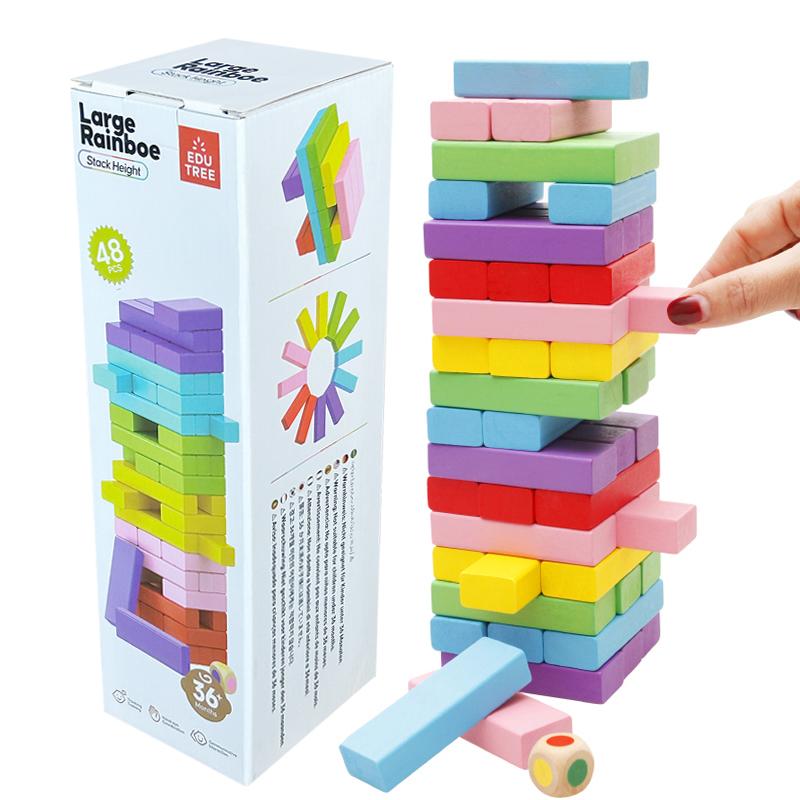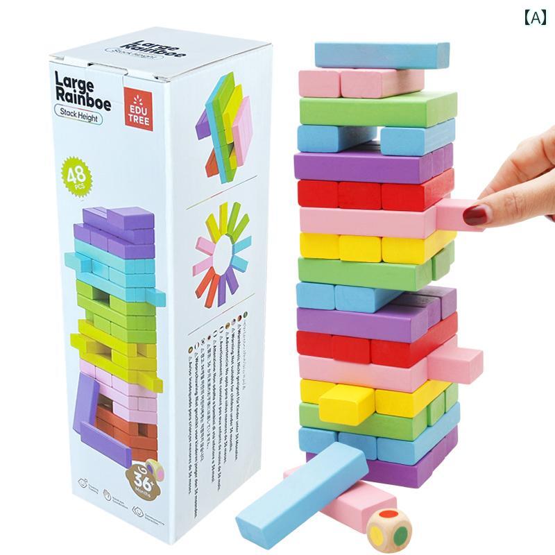 積み木 子供 大人 男の子 女の子 卓上 木製 知育玩具 大型 バランスゲーム ジェンガ 集中力 思考力 育成 室内遊び パーティー アナログゲーム レインボーカラー 家族団らん