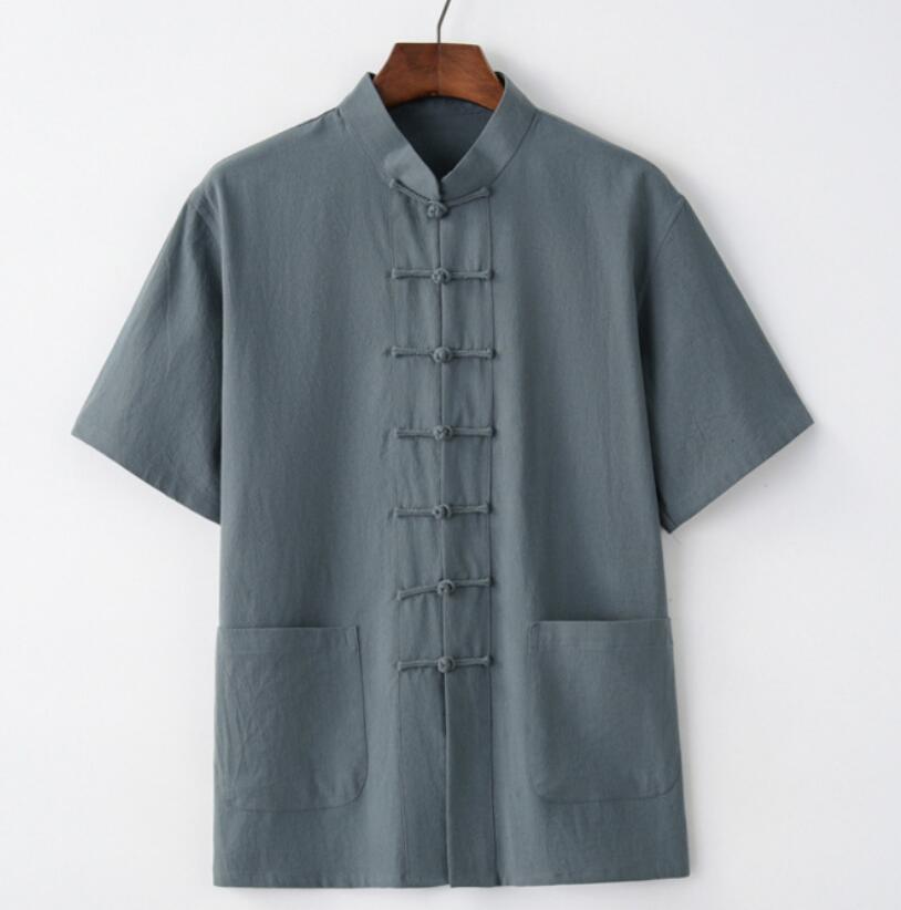 綿麻シャツ ブラウス メンズ 半袖 チ トップス カジュアルシャツ 新作 M L XL 2XL 3XL 4XL 白 黒 ネイビー ワインレッド ベージュ ライトグレー グレー(グリーン系)