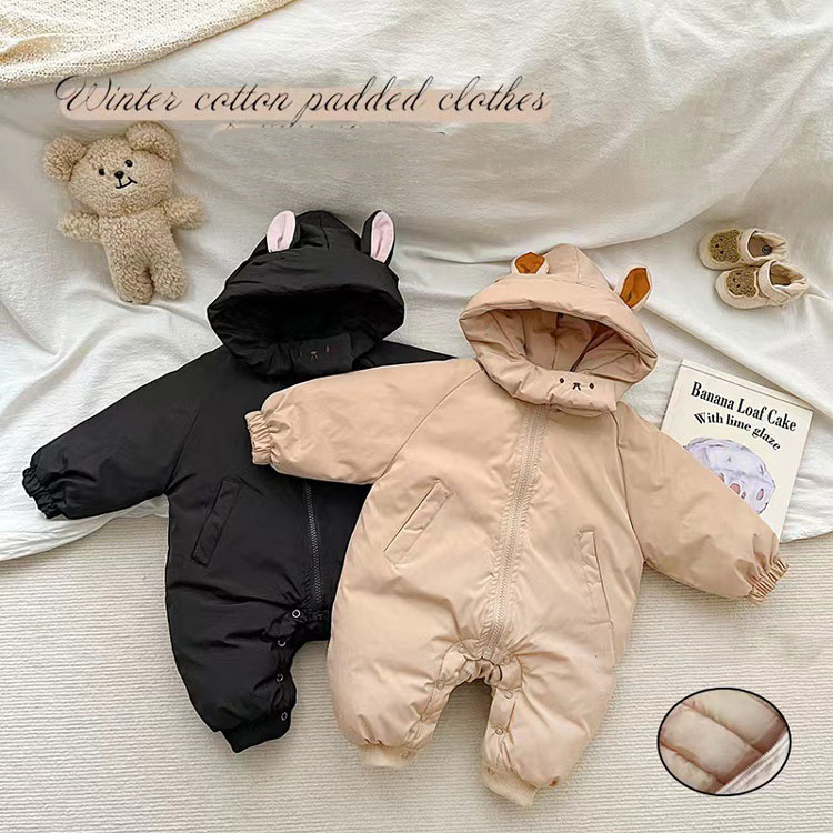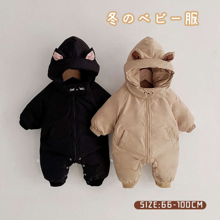 ベビー ジャンプスーツ ベビー服 防寒 ベビー ベビー服 ファッション カバーオール ロンパース 通販 ブラック カーキ 66cm 73cm 80cm 90cm 100cm