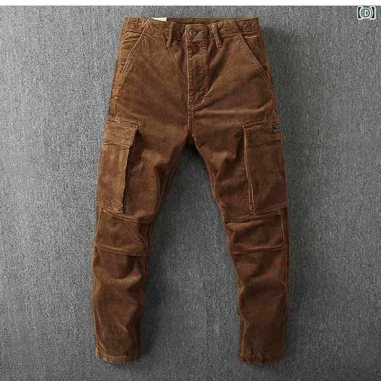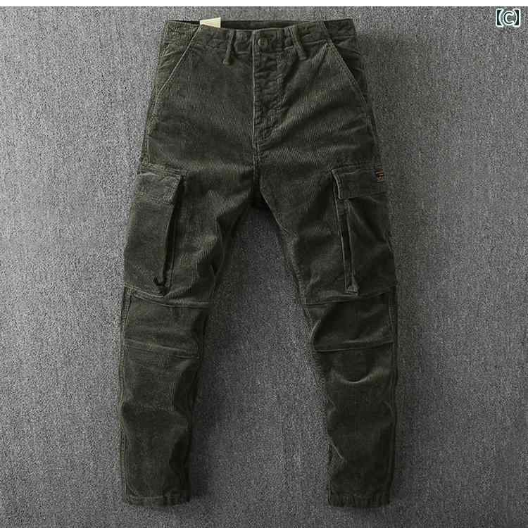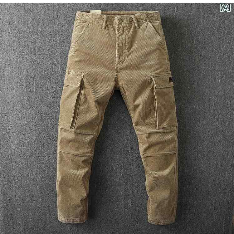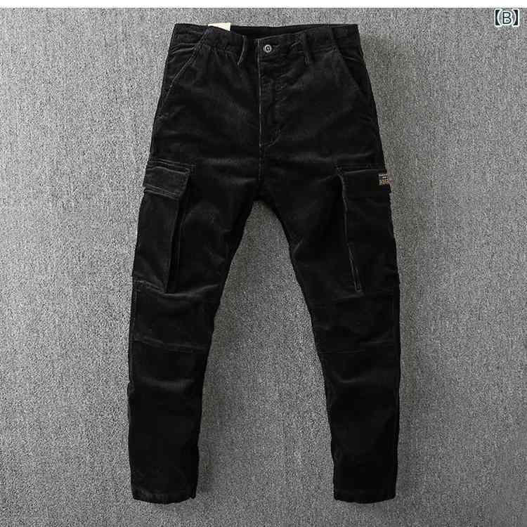 カーゴ パンツ メンズ 秋冬 おしゃれ アメリカン レトロ コーデュロイ カジュアル ポケット ブラック グレー ホワイト ストレート
