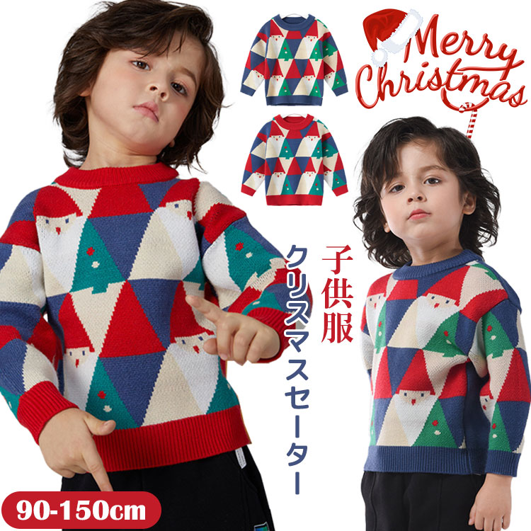 クリスマスセーター 子供 ニットセータ キッズ トップス セーター 新登場! レッド ブルー 90cm 100cm 110cm 120cm 130cm 140cm