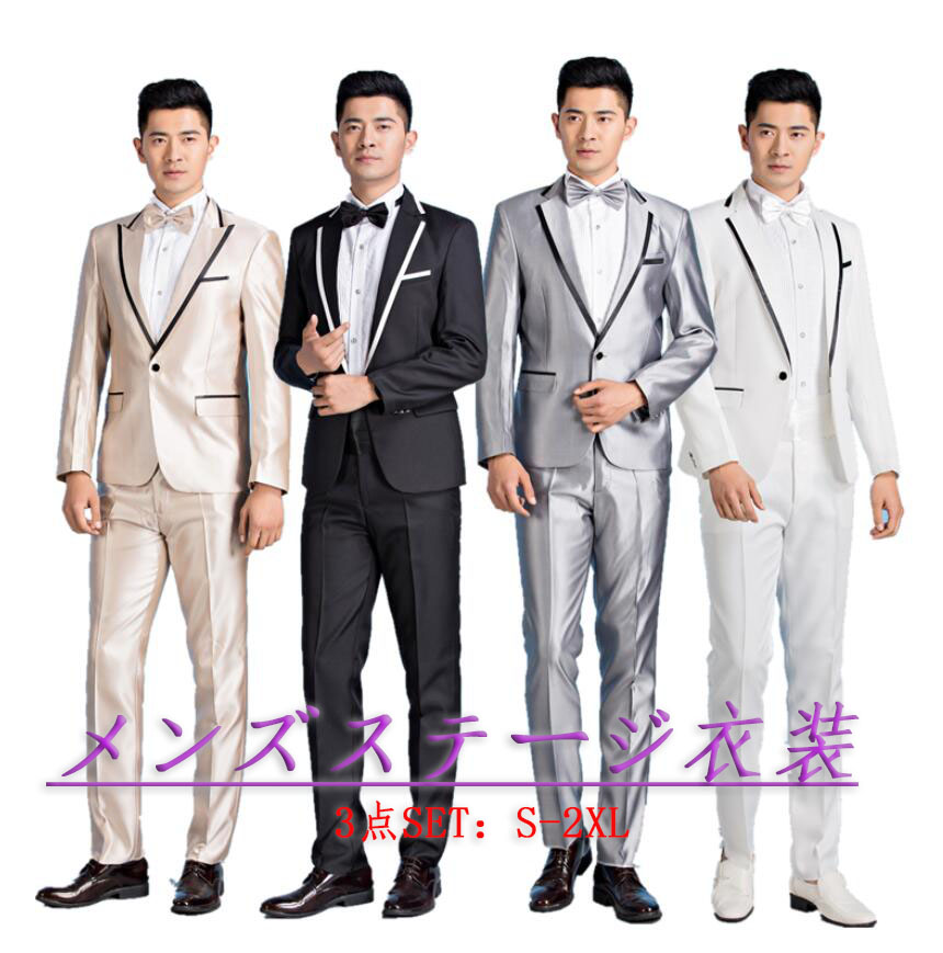 メンズ舞台ステージ衣装 カラースーツ3 メンズファッション 特集 S M L XL 2XL グレー(黒縁取り) シャンパン(黒縁取り) 白(グレー縁取り) 白(黒縁取り) 黒(グレー縁取り) 黒(黒縁取り)