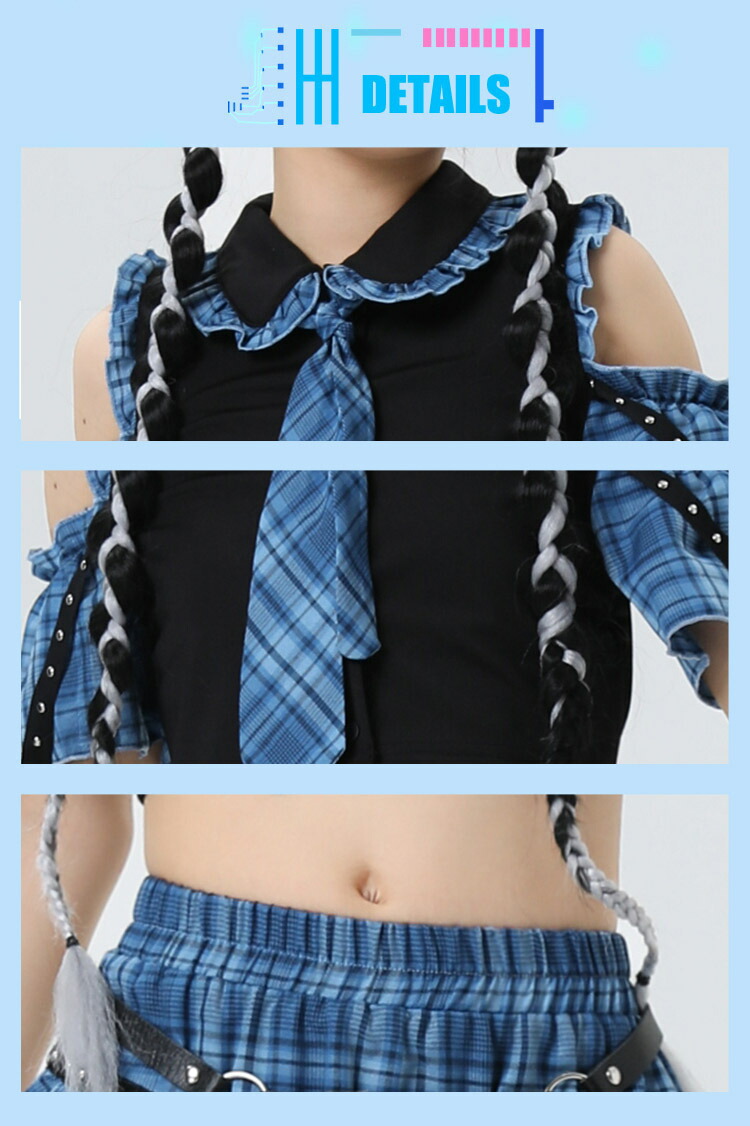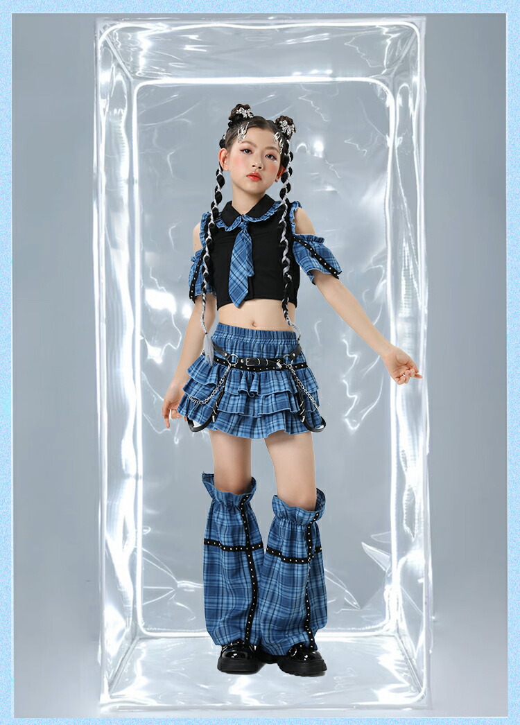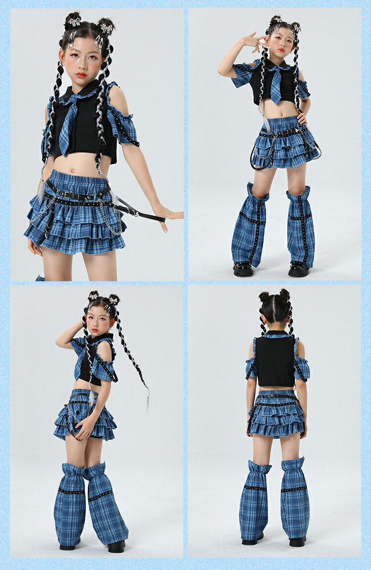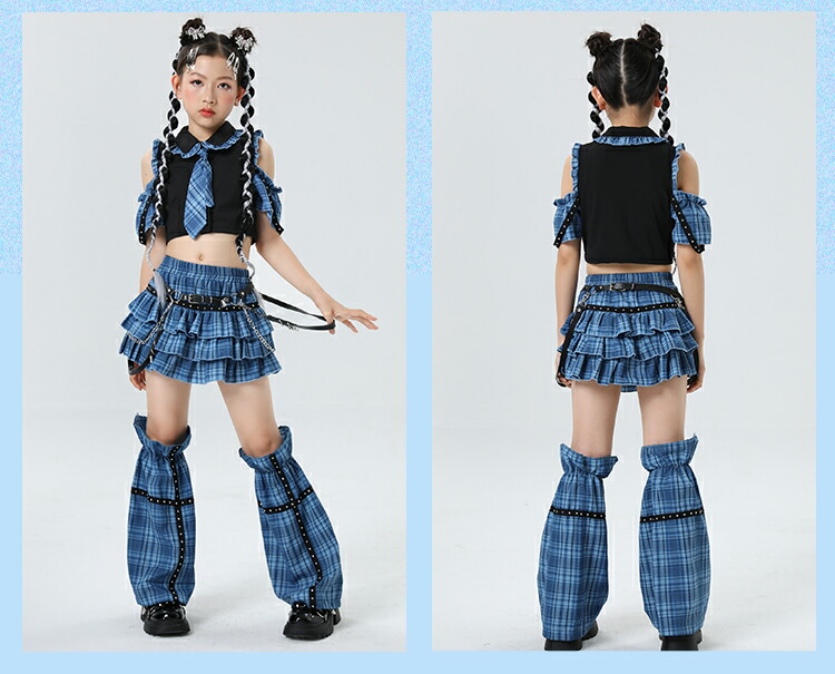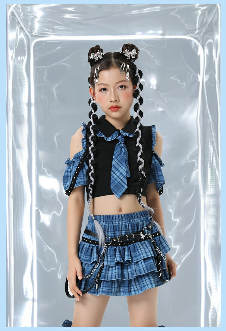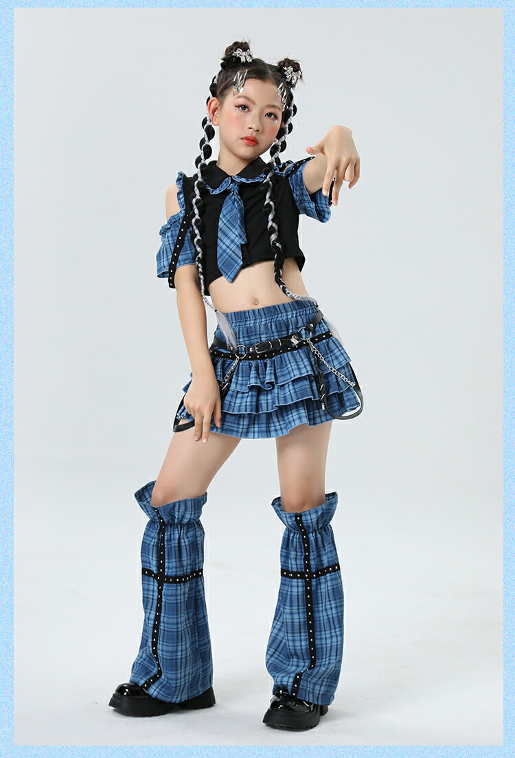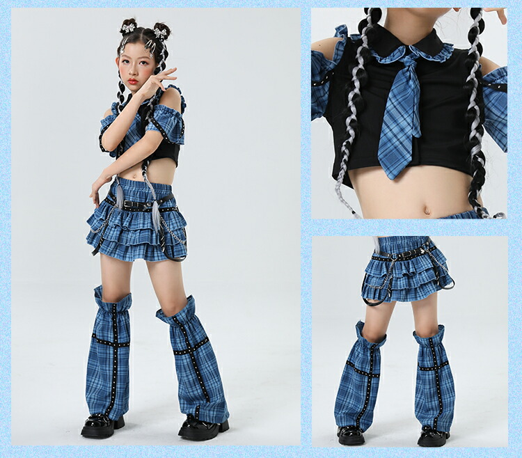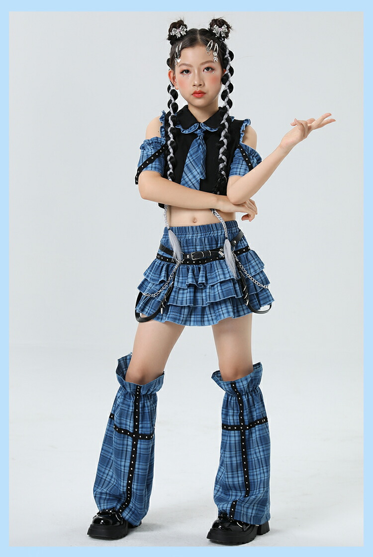 青 チェック柄 キッズダンス衣装 セッ 体操 ダンス 社交ダンス ウェア 人気 トップスのみ スカートのみ(ベルトなし) スカート+ベルト トップス+スカート トップス+スカート+ベルト トップス+スカート+足カバー トップ+スカート+ベルト+足カバー 120 130 140 150 160 170