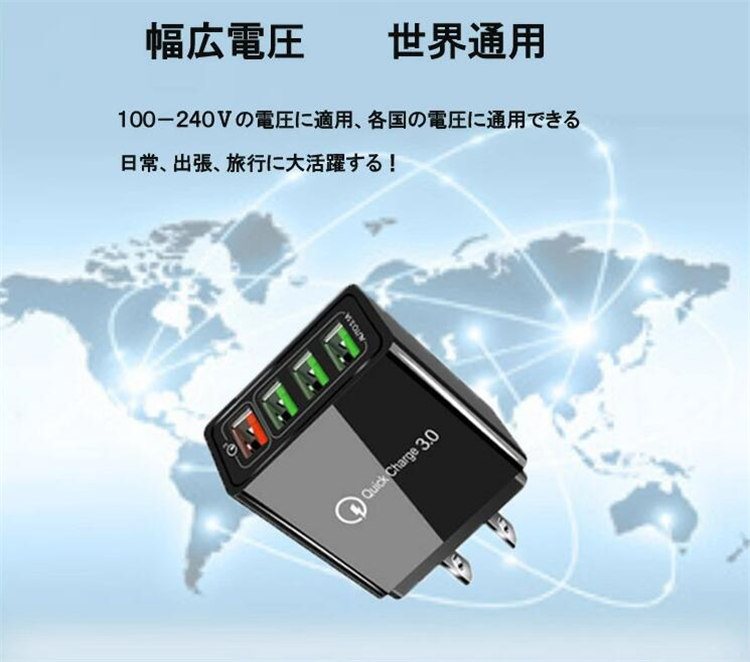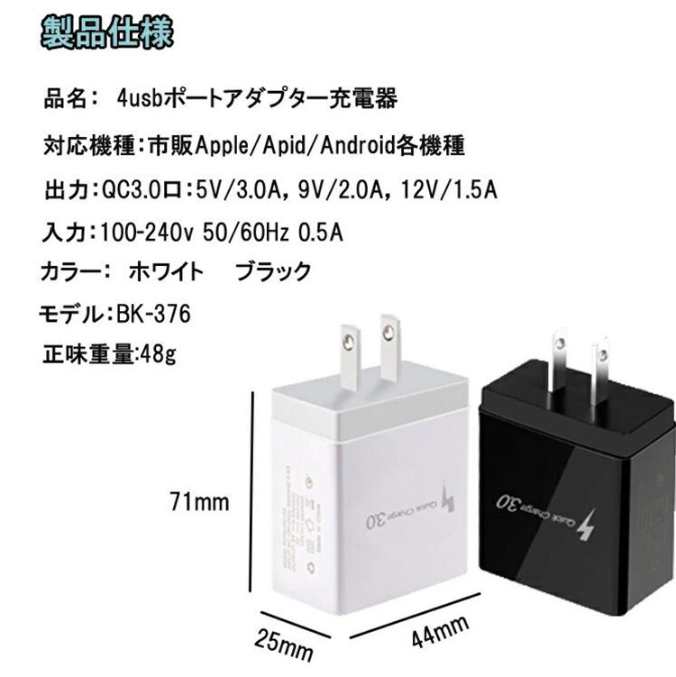 ACアダプター チャージャー USB4 ホワイト ブラック 1点 2点セット