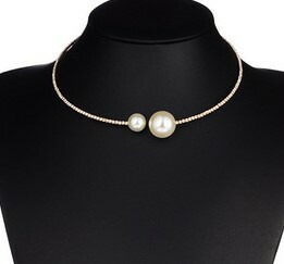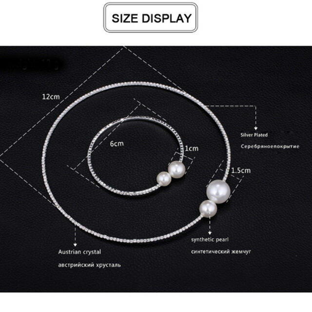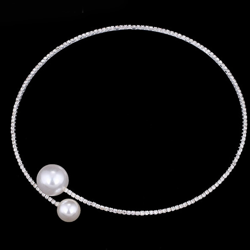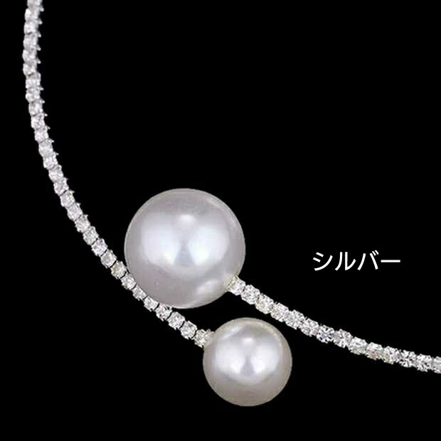 大粒 パール & ラインストーン 形状記憶 チョーカー アクセサリー レディースジュエリー 2カラージュエリー