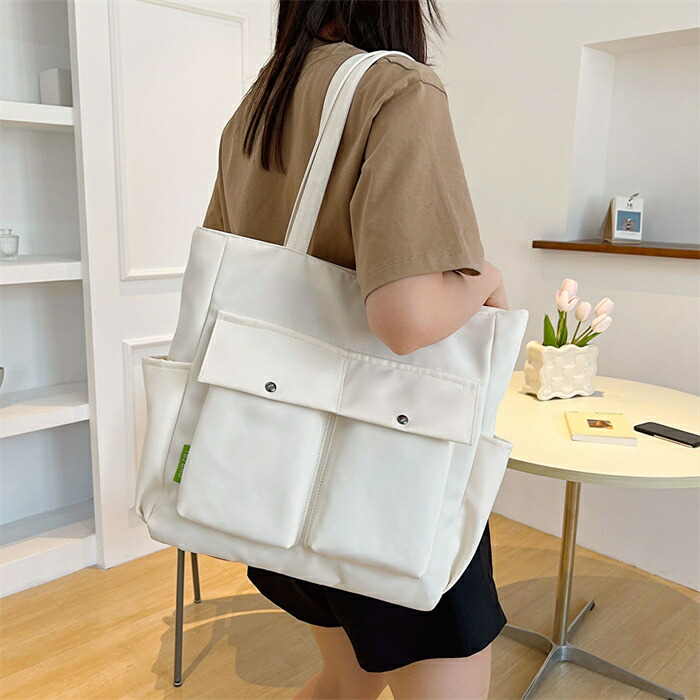 自立 帆布 ポケットトートバッグ 韓国 カバン 無地 レディース キャンバス a4 横 撥水 大きめ 大容量 バッグ ファスナー付き 通勤 通学 肩掛け トート 2way おしゃれ カ マザーズバッグ
